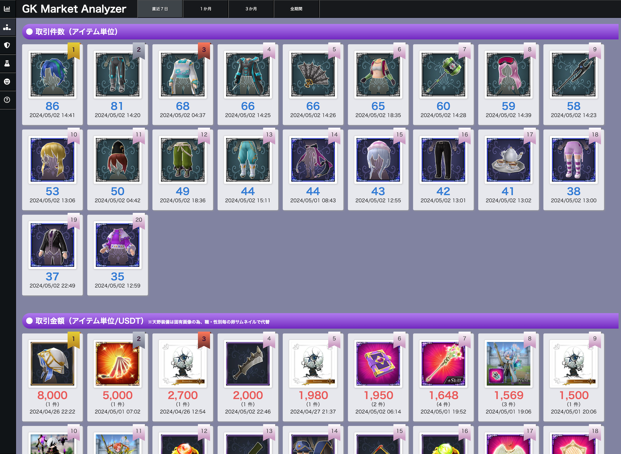 This site analyzes and displays transaction information, the number of transactions, and transaction amounts within the marketplace.