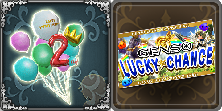 The items include the 2nd Anniversary Lucky Chance and the Cosplay equipment[2 Year Anniversary Celebration] Poofy Balloon].