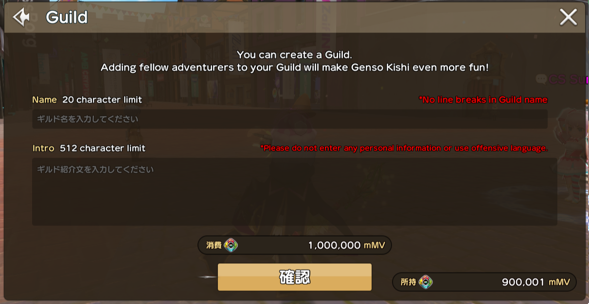 - Guild Description (up to 256 full-width characters or 512 half-width characters)