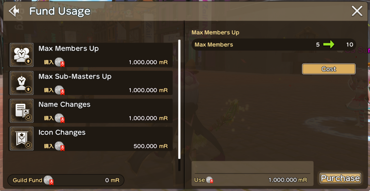 The Guild Master can use the Guild Fund to purchase the following items from the Guild Fund Shop: