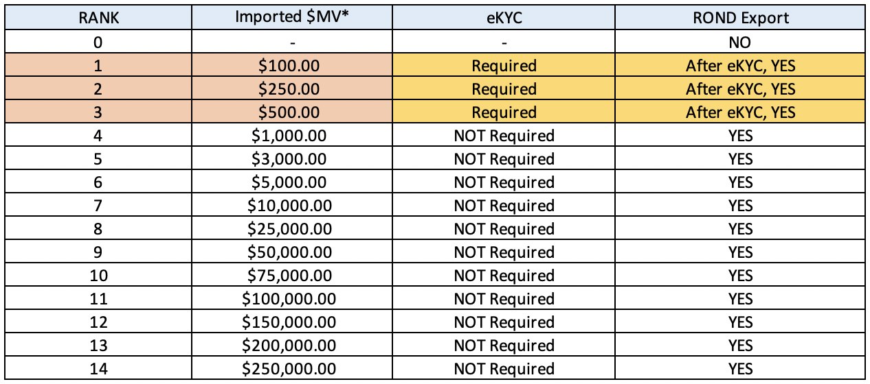 As seen above, under the new rule, player who have not imported $1000 worth of MV or more will be required to complete KYC in order to export ROND.