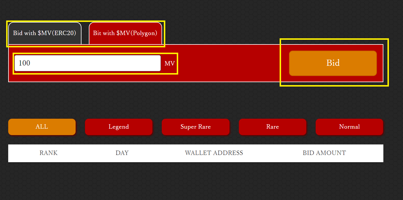 • Enter the amount of MV you wish to bid