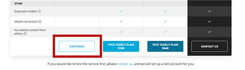 5. Scroll down on the "Choose a plan" screen and click on "CONTINUE" in the "BASIC" section under "Compare Features".