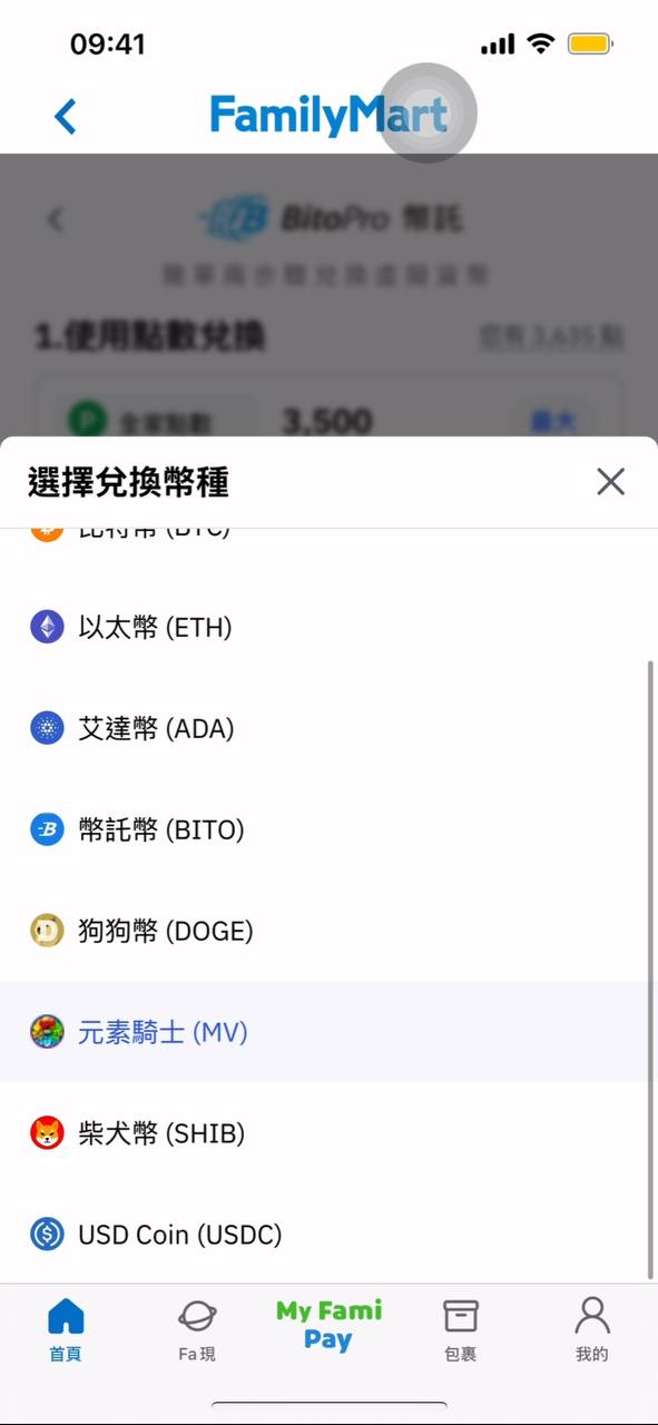 On the FamilyMart App or the MyFamiPort App (Taiwan region only), select the MV token redemption option, then choose the preferred amount and plan.
