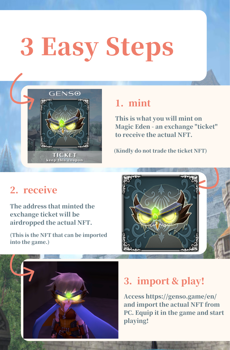 Therefore, the actual Genso NFTs will be airdropped directly to the address that minted the ticket. So kindly do not trade the ticket NFT on the secondary market. Wait until you receive the actual NFT if you want to trade it.