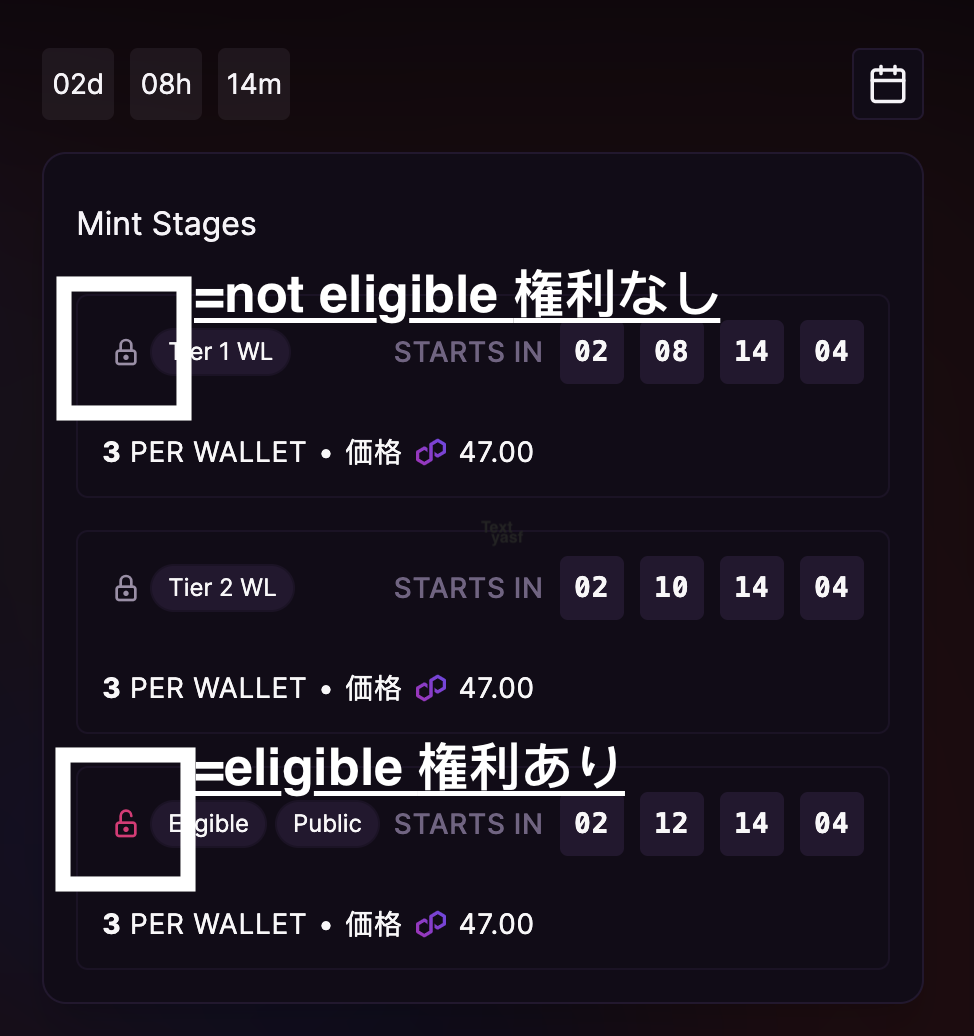 4. Once back on the page, you will see a little lock next to the stages. If eligible it will unlock and turn pink. If not its greyed out and locked. (See below)