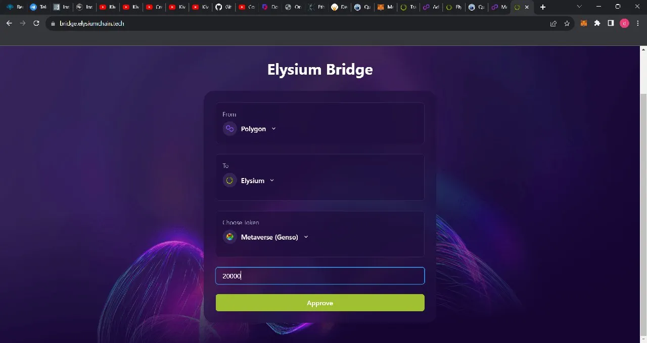 ①Go to Vulcan's Elysium DEX and bridge both tokens from Polygon to Elysium. Find the bridge here.