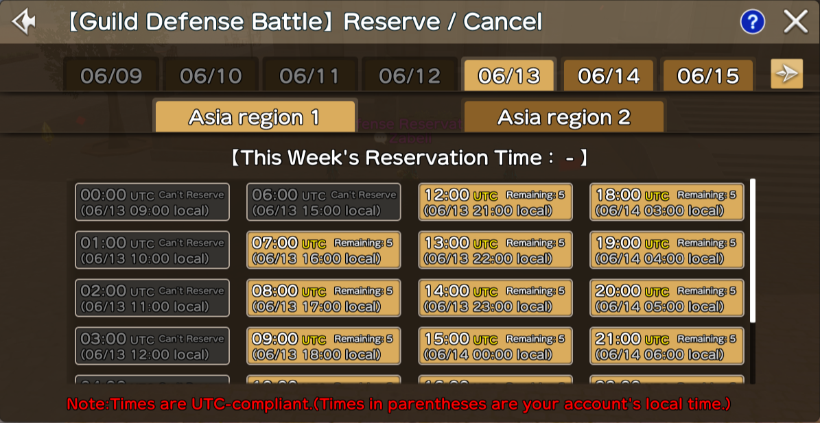 Regarding the Defense Battle reservation screen, we will adjust it to make reservation times clearer.